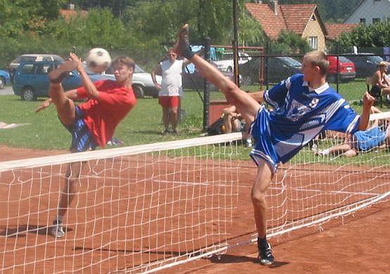 Skupina D výkonnostní kategorie: Příbor × NK Kúpele Piešťany B Smečující Roman Babela a blokující Daniel Krájčík